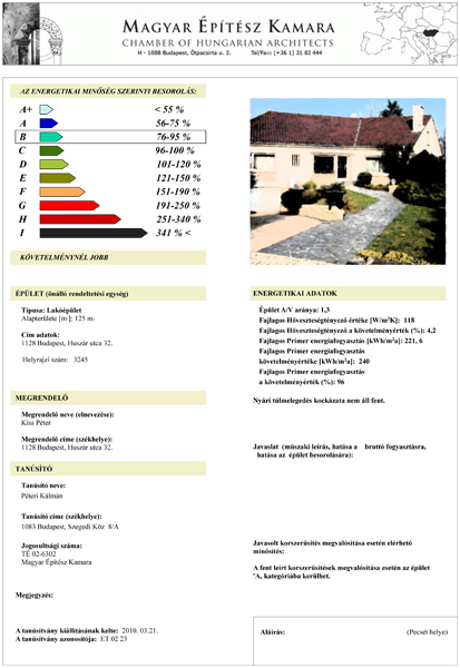 6. A tanúsítvány átadása a Megrendelőnek, feltöltés az Országos Építésügyi Nyilvántartásba, saját példány archiválása.