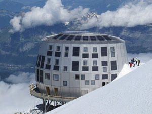 Új menedékház épült a Mont Blanc-nál, 3835 méteres magasságban Hervé Dessimoz és Christophe de Laage építészek tervei alapján. Az energetikai szempontból teljesen önellátó, 120 fő számára komfortos pihenőhelyet nyújtó, jellegzetes formájú épület megvalósítása különleges kihívást jelentett a tervezők és az építők számára a zord időjárási viszonyok között.